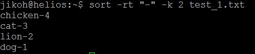 -k 2: 구분자로 지정한 -를 기준으로 두번째 필드를 정렬한다.